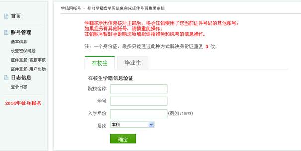 学生点【提供学籍或学历信息】完成审核。